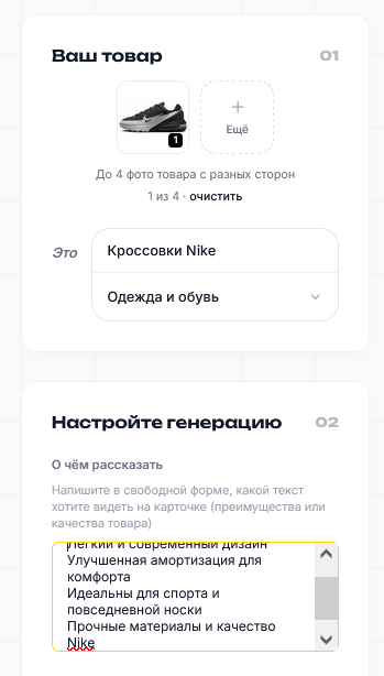 Укажите заголовок, описание, акции или характеристики. AI подберёт оптимальную компоновку.